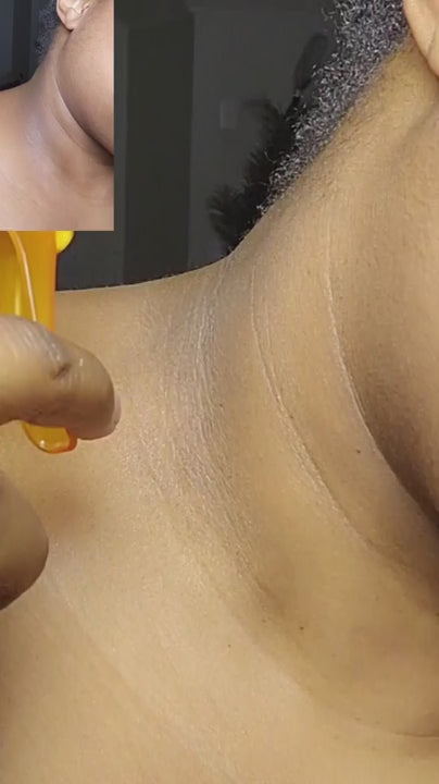 Answer: Our spray targets the most common insecurities women face — uneven tone, dark underarms, inner-thigh shadows, elbow and knee discoloration, acne scars, and dull patches. With Kojic Acid, Turmeric, and Vitamin C, it gently fades dark spots while brightening and renewing your skin for a radiant, even complexion.
